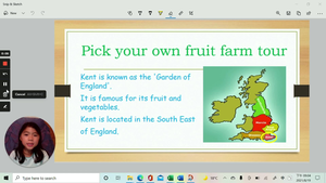 Ariel與Isabelle姊妹介紹英國倫敦東南方素有「英格蘭的花園」之稱的肯特郡裡一座採水果農場,同時介紹農場裡水果與農具的英文名稱與採水果相關的英文用語。