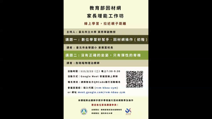 課程內容:本場次工作坊課程由臺北市金華國小曾振富校長以及詹珞瑤物理治療師擔任講師,臺北市立大學黃思華副教授擔任主持人。曾振富校長先從居家學習著手,建議家長引導陪伴孩子一起學習,之後講解因材網與自主學習的理念,讓孩子使用因材網來達成自主學習的目標,曾校長也親自教導家長們因材網的使用與註冊,家長與孩子帳號的綁定,派送任務等功能。詹珞瑤物理治療師講解久坐會造成的問題,包括心血管疾病、腰椎間盤突出、肺栓塞等問題,也講到能站就不要坐,強烈建議5–17歲青少年及兒童一周裡平均每天應進行60分鐘中等到高強度身體活動,大部分是有氧運動,此外一周裡至少3天應進行高強度有氧活動與加強肌力與骨骼的運動,最後講解腰椎間盤突出的問題。