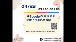 課程名稱:用Google表單輕鬆設計線上密室逃脫遊戲
