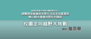本課程為加深加廣課程健康與運動休閒-親山樂水休閒活動:定向越野為主題,以定向越野的各項比賽方式完成『校園定向越野大挑戰』。本課程以合作學習的教學方法,讓學生能學習與同儕合作達到學習目標,並且融入知識答題的挑戰外,也讓學生於課後完成反思學習單和比賽影片觀賞,整合學生認知、情意、技能與行為的學習,以達到素養導向的目的。