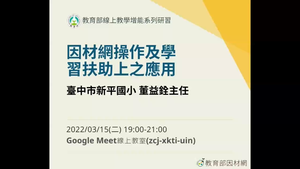 課程內容:本次線上教學增能研習,邀請台中市新平國小董益銓主任擔任講師,除了介紹因材網初階使用方式以外,更帶著與會教師一同進行實作。