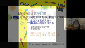 課程內容:本場次邀請許碧惠教師分享因材網使用與操作,講師先介紹108課綱中國文課的架構,包含課綱精神、課程目標、五大文本、學習內容及學習表現,並連結因材網知識節點,說明因材網概括課綱那些學習內容;之後講師開始介紹因材網使用方式及知識結構系統,並邀請未使用過因材網的程貞慈教師一同操作,確定程教師完成後再接著下一步驟,此舉能顧及初次使用帳號的教師,指派任務、新增組卷過程也為有疑問的教師解惑。