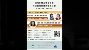 新北市重慶國中蔡佩旻老師與我們分享了國中數學科混成教學時的實務經驗,包含了環境與設備、數位資源工具、平台介紹、教學運用的部分,提及了目前教學模式的劇變、設備環境等教學現場上做的種種改變,也提及目前教師應具備「資訊能力」、「教學設計」、「班級經營」的能力。