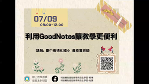 課程內容:本場次線上教學教師增能研習邀請到臺中市德化國小黃幸萱老師擔任講師,介紹實用App融入教學。從初步的GoodNotes的介面介紹到教學現場的使用,幸萱老師在此次手把手的帶領與會教師學習GoodNotes。幸萱老師也分享了透過GoodNotes能讓學生繪製課文心智圖、書寫課堂筆記、製作學生的行事曆或讀書計畫等,藉由GoodNotes融入於教學中,不僅學生學習動機變強、教師教學更順手。此場次為基礎課程,因與會教師反應良好,預計於八月開設進階課程。