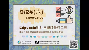 課程內容:本場次線上教學教師增能研習邀請到新北國中英語輔導團研究員謝憶茹老師擔任講師。有著多年英語教學經驗的憶茹老師這次的研習是針對各科領域的內容都能做的課程設計。研習中憶茹老師手把手的教導Edpuzzle的影片剪輯、影片中提問設置、評分回饋等功能,透過老師仔細的教學,研習參與教師能更快學會Edpuzzle融入教學的技巧,省去許多摸索平台的時間,並有新的教學啟發。