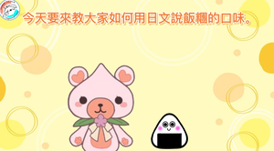 日本飯糰口味的日文單字教學,以及台灣飯糰口味的日文。本教材可搭配合日本NPO團體發起的全球性紀念世界糧食日(10月16日)的公益活動「飯糰行動」(おにぎりアクション)使用。