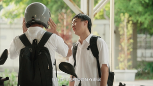 02:30 後方突然有機車超車,小華想加速超越,卻被志明制止。