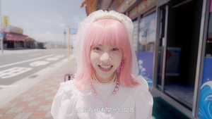 00:00 一位身穿婚紗粉紅色頭髮的女生,在介紹北部粽和南部粽。