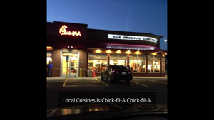 影片以圖片為主, 加上配音, 內容介紹芝加哥在地美食Chick-fil-A連鎖餐廳, 同時描述該餐廳的歷史與特色。Chick-fil-A餐廳名稱其來有自, 意思是"Great Aid for all" (協助所有人)。目前, 全美只有三個州沒有Chick-fil-A餐廳;最特別的是, 所有的Chick-fil-A餐廳星期天都不營業, 這也是創辦人為了讓員工們可以休息的貼心, 影片最後則說明Chick-fil-A餐廳在美國的營業狀況。