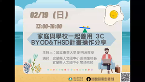 課程名稱:家庭與學校一起善用 3C,BYOD&THSD計畫操作分享