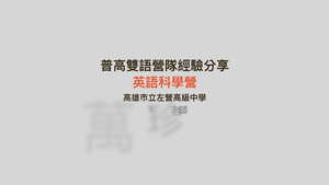 高雄左營高中課後舉辦英語科學營活動,以多元科普主題引發動機,再搭配活動設計、小組互助與鼓勵友善氣氛,提高學生對英語學習的接受度,達成廣泛式語言學習的目標,也作為雙語教育的立基參考。在此分享多年操作過程的一些心得。