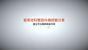 分享者目前沒有雙語教師證、也還未修習雙語學分班,會投入雙語完全本著對英文以及雙語教學的好奇與自身的動機。期盼能以此影片激勵與我一樣的「雙語素人」,如何透過各式資源,組成堅實的雙語團隊、開發屬於團隊的雙語課程,一起為學生的視野做出突破。