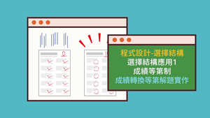 1.巢狀選擇應用,判斷5種成績等第的問題解題流程。
