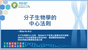 分子生物學中心法則,指DNA分子表現出遺傳性狀的過程。DNA分子自我複製產生新的DNA,透過轉錄製造RNA,RNA再藉由轉譯製造蛋白質