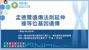 決定一種性狀的等位基因有三種以上,稱為複等位基因遺傳,例如人類ABO血型由等位基因IA、IB、i所決定
