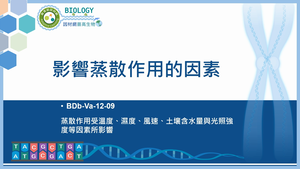 蒸散作用受溫度、濕度、風速、土壤含水量與光照強度等因素所影響