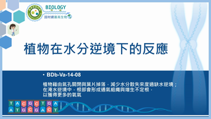 植物藉由氣孔關閉與葉片掉落,減少水分散失來度過缺水逆境;在淹水逆境中,根部會形成通氣組織與增生不定根,以獲得更多的氧氣