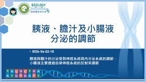 胰液與膽汁的分泌受到神經系統與內分泌系統的調節,小腸液主要透過自律神經系統的反射來調節。
