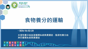 水溶性養分由血液循環系統負責運送,脂溶性養分由淋巴循環系統負責運送。