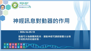 動器可分為腺體與肌肉,運動神經可調節腺體分泌情形或肌肉的收縮狀態。