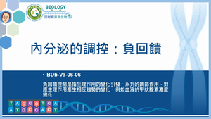 負回饋控制是指生理作用的變化引發一系列的調節作用,對原生理作用產生相反趨勢的變化,例如血液的甲狀腺素濃度變化