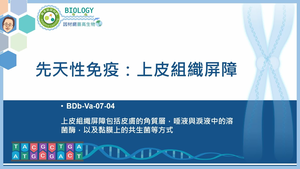 上皮組織屏障包括皮膚的角質層,唾液與淚液中的溶菌?,以及黏膜上的共生菌等方式