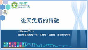 後天免疫具有專一性、多樣性、記憶性、耐受性等特性