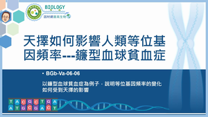 以鐮型血球貧血症為例子,說明等位基因頻率的變化如何受到天擇的影響。