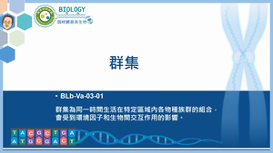 群集為同一時間生活在特定區域內各物種族群的組合,會受到環境因子和生物間交互作用的影響。