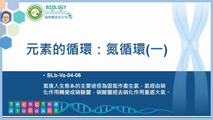 氮進入生態系的主要途徑為固氮作產生氨,氨經由硝化作用轉變成硝酸鹽,硝酸鹽經去硝化作用重返大氣。(建議此知識節點只談固氮硝化及去硝化)