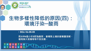 雨水PH值小於5即為酸雨,會導致土壤的營養鹽溶解、植物葉片受傷等等不良效應。