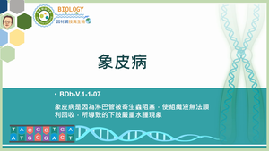 象皮病是因為淋巴管被寄生蟲阻塞,使組織液無法順利回收,所導致的下肢嚴重水腫現象