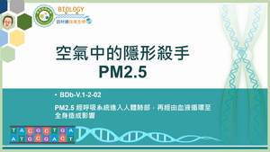 PM2.5 經呼吸系統進入人體肺部,再經由血液循環至全身造成影響