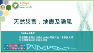 地震及颱風是自然現象造成的天然災害,會影響人類生活及環境中的生物多樣性