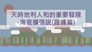 海底擴張學說:中洋脊溢出玄武岩質岩漿,形成新的海洋地殼,隨著時間往兩側對稱擴張。