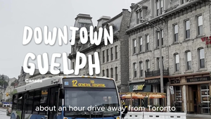 介紹Guelph市中心,內容包含:Royal City Park、The Boathouse、冰淇淋、滑船、The Basilica of Our Lady Immaculate、Guelph Civic Museum、街景、Guelph Central Station 、Guelph Central Go station 、Hohn Galt Park、River Run Center、Market Fresh、Guelph Public Library、Bookshelf、old Quebec Street Mall等。