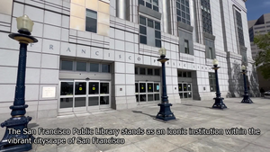 介紹美國舊金山市立圖書館: 作者說明該圖書館是舊金山市知識、文化和社區精神的象徵。因為建築物特色、館藏豐富、創新的安排和對社區的服務,使其成為一個深受民眾珍愛的機構。特別提到館藏內容提供範圍廣泛,包括文學與數位領域,及各不同時代的書籍。