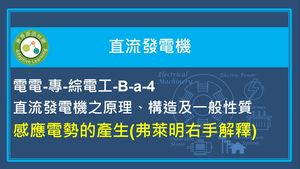 直流發電機之原理,構造及一般性質-感應電勢的產生(弗萊明右手解釋)