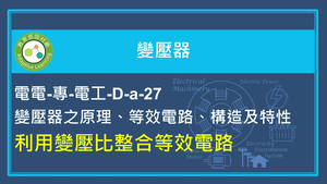 變壓器之原理,等效電路,構造及特性-利用變壓比整合等效電路