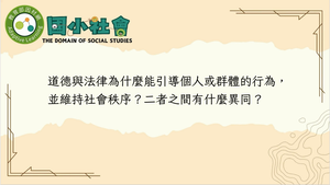 學習內容:Aa-Ⅲ-2 規範(可包括習俗、道德、宗教或法律等)能導引個人與群體行為,並維持社會秩序與運作。