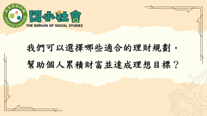 學習內容:Db-Ⅲ-1 選擇合適的理財規劃,可以增加個人的財富並調節自身的消費力。