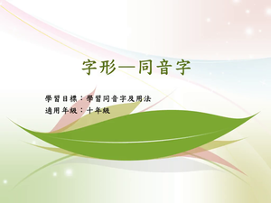 學習表現:4-Ⅴ-1 認識六書的原則,了解字形、字音、字義的關係。