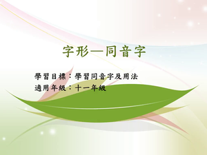 學習表現:4-Ⅴ-1 認識六書的原則,了解字形、字音、字義的關係。
