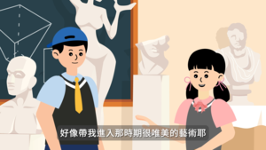 藉由美術教室裡的石膏像引導到文藝復興時期的時代背景及達文西的作品介紹