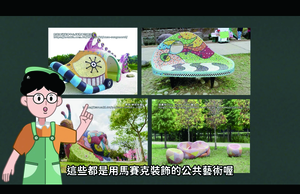 欣賞各種以馬賽克裝飾的建築或作品,並試著用馬賽克拼貼的方式創作。