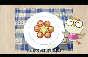 本單元以「美感秩序」為核心,帶領學生透過觀察、排列與組合,探索視覺元素中的關係與秩序,理解美感的原理原則,並實踐於創作中。學習目標在於培養學生對「秩序、美感原則與構成方式」的敏銳觀察力,並能運用於日常生活的美化。課程內容從甜點與餅乾的擺盤入手,引導學生體會「反覆」、「對稱」、「漸層」等美感原理,進一步延伸至生活中的摩天輪、公園設施與裝飾物件,讓學生發現美感設計隱藏在日常細節中。最後,運用圓點貼紙創作,嘗試重複、對稱、放射狀或同心圓的排列方式,培養創意實踐與美感設計思維,並將所學運用於生活環境的美化,從而體驗藝術與生活的緊密連結。