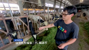 崙背酪農區VR360影片遊在地酪農產業經營者介紹,作為產業第三代負責人,實際展現上游產業內農場建置、環境設備介紹、牛隻狀況等資訊。