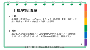 學習表現:設 c-Ⅳ-1 能運用設計流程,實際設計並製作科技產品以解決問題。