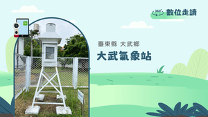 中央氣象署大武氣象站門口的解說牌,記載著氣象站的前身和建築物說明,簡易描述此站的工作內容。觀測坪設置於建築物空曠處,臨海岸線不遠,內有舊式百葉箱,與雨量器和雨量儀、溫度、濕度、日照儀器及輻射計。樓頂的風力塔,有風向、螺旋槳型風速儀、風杯型風速計,及能見度的資料回傳箱。