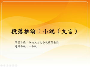 學習內容:Ad-Ⅴ-4 非韻文:如古文、古典小說、語錄體、寓言等。